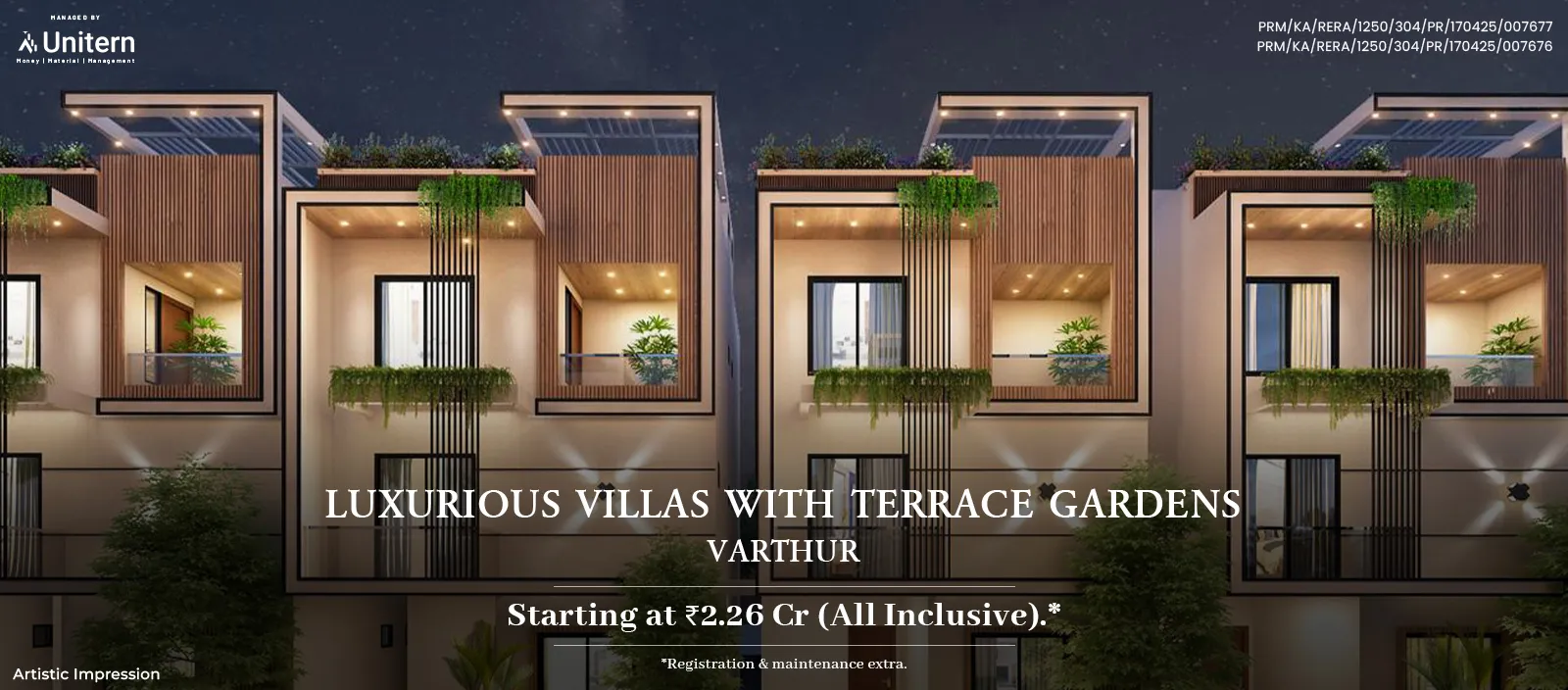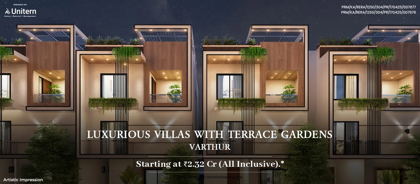 The leadership team of VSPR Developers is an experienced team of professionals, having worked with well-known large real estate organisations in Bangalore for over 25 years. They have delivered several millon sq ft of residential dwellings. The team is well versed with designing, constructing, selling and delivering high rise Apartments, Villas and Plots. The VSPR team has now embarked on launching a luxury independent Villa project in the heart of Varthur, Muthasandra. This is a boutique Villa project of just 55 Villas on a 3 acres land parcel.