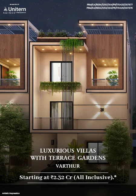 Bhuvana Boulevard is a prestigious 3-acre development featuring 55 luxury villas across two phases, located in Varthur's rapidly growing IT hub. Combining modern living with natural tranquility, it offers a serene retreat close to urban amenities. Each villa is meticulously designed with spacious interiors, ample natural light, and provisions for a personal lift, ensuring maximum comfort. A well-equipped clubhouse provides sports and leisure facilities, enhancing the living experience. The private terrace gardens offer a peaceful outdoor space for relaxation and social gatherings. With cozy, rejuvenating bedrooms and thoughtfully crafted spaces, Bhuvana Boulevard delivers an unmatched lifestyle of elegance, comfort, and tranquility, making it the perfect modern retreat.